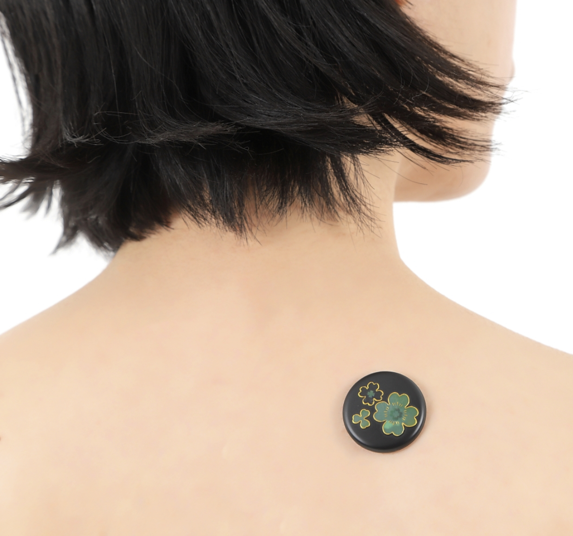 直径3㎝、厚さ3㎜、重さ5g 服の下でも違和感なくご使用できます。